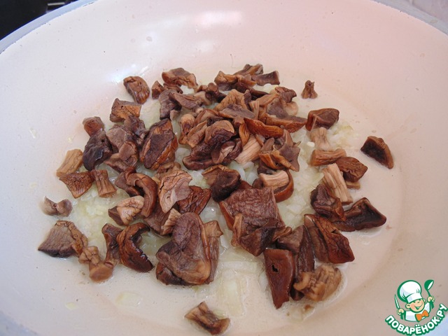Заранее промыть сухие грибы и замочить на несколько часов.