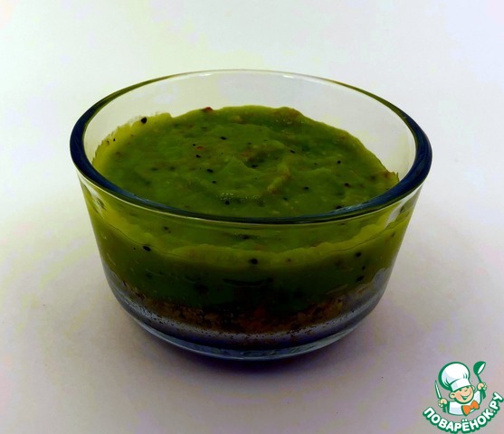 [+5]Готовила без добавления мёда; тарелку застилала пищевой плёнкой и на неё выкладывала сам торт; ставила в морозилку на 3 часа, потом переставила в холодильник на час где-то; киви у меня были крупные, как и груши, так что немного осталось начинки (которая очень вкусная сама по себе