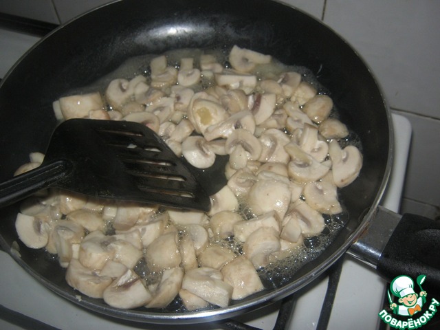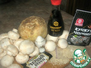 Грибы нарезать крупными кусочками, сельдерей натереть