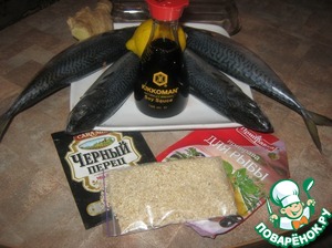 Скумбрию вымыть, разделать, обсушить, хорошо намочить в соевом соусе ТМ "Kikkoman", оставить на 15 минут