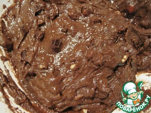 В мучную смесь выльем жидкие ингредиенты и смешаем до однородности. Затем добавим орехи и шоколад и ещё раз перемешаем. О, эти кусочки шоколада!!! И волшебный аромат!!!