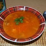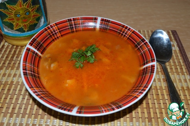 Ссылочку на рецепт этого совершенно потрясающего супа мне дала Жанночкин, за что ей низкий поклон и море благодарностей. Невероятно вкусный, насыщенный, яркий суп, а готовится очень просто и быстро, особенно, если у вас есть в наличии немного отваренной перловки. Попробуйте, вы не пожалеете ни минуты. Суп особенно нравится мужчинам, ведь в нем СТОЛЬКО МЯСА!!! Настоящий мужской суп! Рецепт от Оли (сайт Харч. ру)