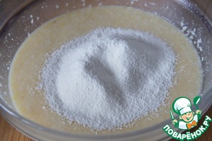 В последнюю очередь просеять сверху муку и еще раз хорошо перемешать.
