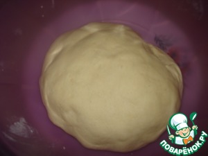Муку просеять и добавить к молоку и дрожжам, вымесить тесто. В конце замеса постепенно добавляем масло.