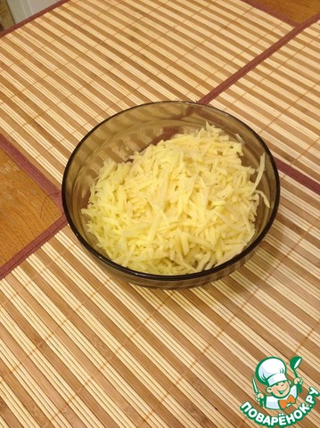 Картофель натерла на крупной терке, сбрызнула лимонным соком.