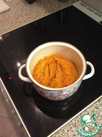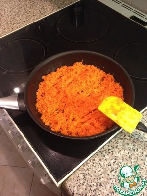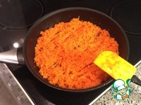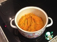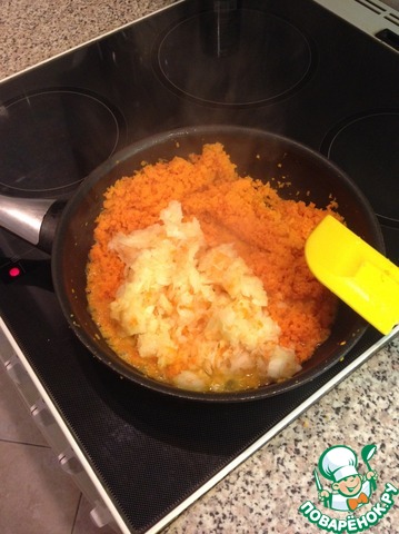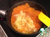 Когда морковь немного подрумянилась, добавляю луковое пюре, продолжаю пассеровку, помешиваю.