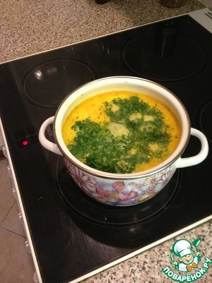 Сырки натерла на крупной терке, переложила в суп, размешиваю до полного растворения сыра.