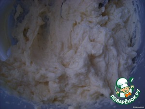 Размягченное масло взбить, постепенно добавить сгущенку и охлажденную массу, взбить. -