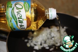 Очистите лук. Нарежьте его мелко. На сковороду добавьте немного растительного масла и обжарьте лук до прозрачности.