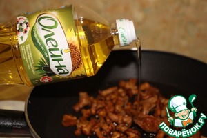 Грибы разморозим и обжарим в масле до готовности. Можно немного посолить.