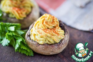 Шампиньоны, фаршированные чечевично-куриным муссом