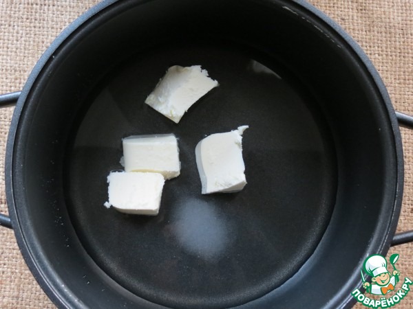 в кастрюлю с толстым дном положить масло, соль, сахар, воду.