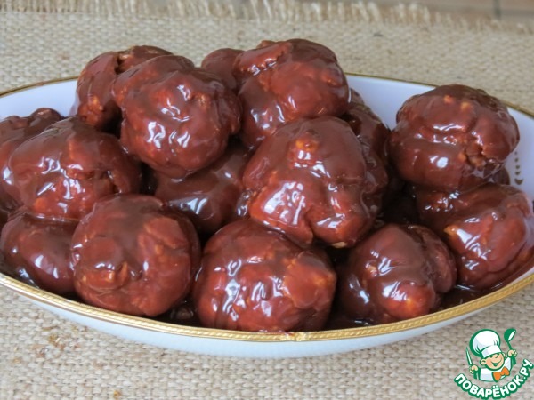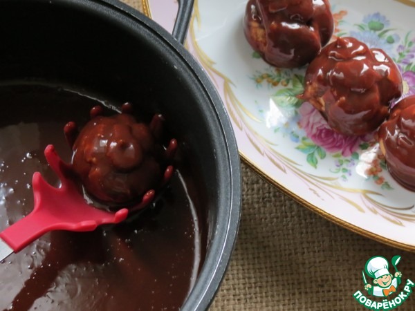 При помощи ложки окунуть каждый профитроль в шоколадную глазурь.
