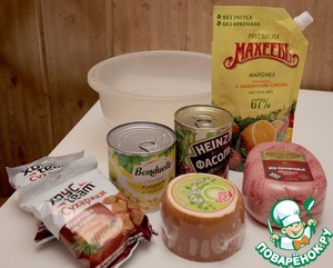 - Сыр колбасный (Тут уже по вкусу, можно больше) — 250 г