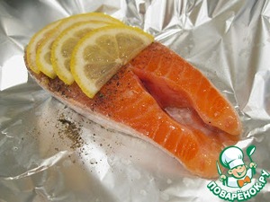Завернуть рыбу в фольгу. Отправить в духовку при 200 градусах на 15-20 минут.
