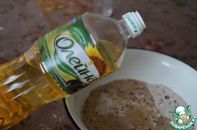 В сухую смесь добавить воду и растительное масло (2 ст. л).