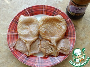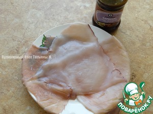 Кальмара очистить, разрезать вдоль по брюху с одно стороны;