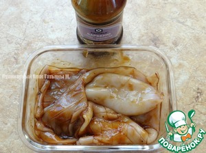 Рецепт «Жареный кальмар под тыквенно-соевым соусом»: