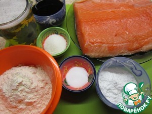 Но чтоб во время фритюра кляр остался на рыбке, а не отдельно, нужно этот кляр к рыбке прилепить. Для этого и обваливаются рыбные кусочки в муке (эта мука идет дополнительно), а потом окунаются в кляр.