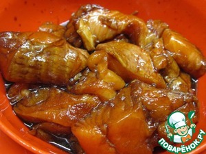 Очень нежная ароматная форель, замаринованная в соевом соусе Киккоман и зажаренная в кляре. А изюминкой этого блюда является прозрачный кляр, он придает тонкую элегантную нотку нашей рыбке.