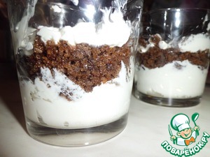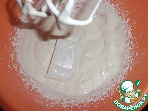 Взбиваем сливки, добавляем сахарную пудру и творог, еще раз тщательно взбиваем.