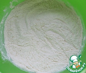 Пока готовится черничное варенье, смешать муку с сахаром (в оригинале 1 ч. л., но мне ее уж очень мало, смотрите по своему вкусу), солью и пекарским порошком.