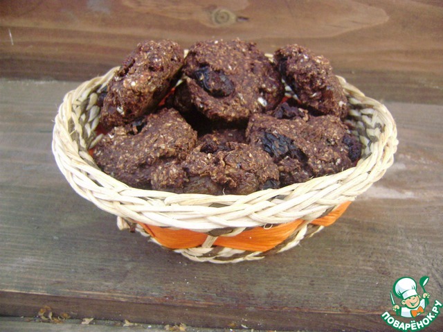 По фотографии видно как все просто.. важно также упомянуть, что все ингредиенты я брала на глаз.. то есть если мне хотелось по слаще, то брала больше какао или изюма.. какао кстати есть разных видов. Я купила тот, у которого было меньше всего калорий.. итак :овсянку, какао, яйцо и изюм размешать и залить немного кефиром для связки продуктов (в принципе можно взять то, что есть в холодильнике.. йогурт, молоко и т. д) выкладывать готовую смесь ложкой на противень, постеленной пергаментом.. выпекаю я 10-15 мин. при 200 градусов.. потом духовку выключаю и оставляю мое печенье в духовке пока она не остынет..