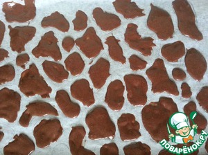 Затем я, белым тестом провела контуры между пятнами и вылила оставщее тесто на них. Выпекать в разогретой 170*С духовке 8-10 минут.