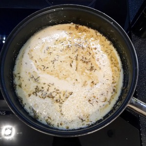 Данный рецепт рассчитан на сковороду в 28 см. Это ВАЖНО! Если у Вас форма меньше или больше-ориентируйтесь на это! Разогреваем сковороду и кладем туда розмарин, на среднем огне обжариваем минутку, чтобы он отдал маслу весь аромат!