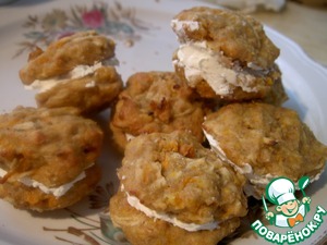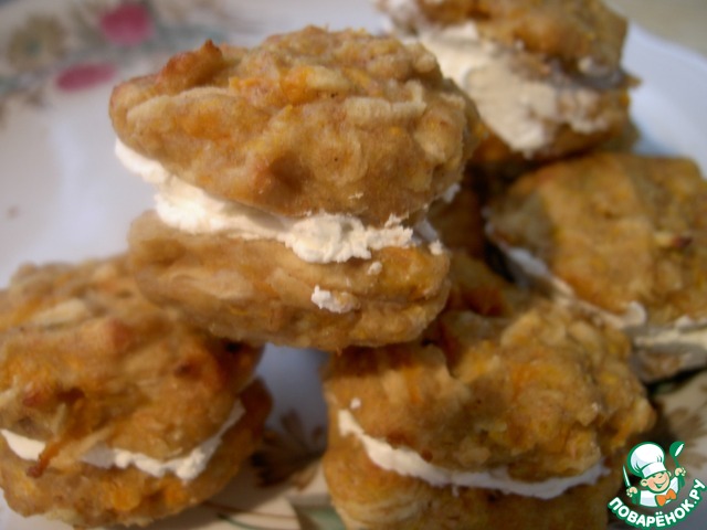 • Их можно кушать просто так, с чаем, с молоком. Я же предлагаю такой вариант: промазать печеньки сладким творогом или творожным сыром и "склеить" между собой по две штучки. Это напоминает маленькие пироженки. Наш Антошка ел их с удовольствием! Да и мы не отставали! Вкус тыквы в них чувствуется.
