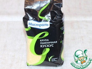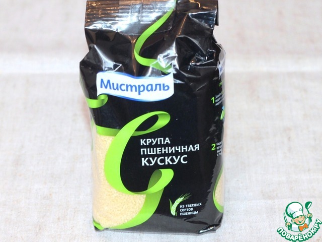 7. Довести бульон до кипения и залить им кускус, накрыть крышкой и оставить на 5 минут. Затем «распушить» его вилкой, добавить соль, перец, рубленную зелень и влить сок лайма.