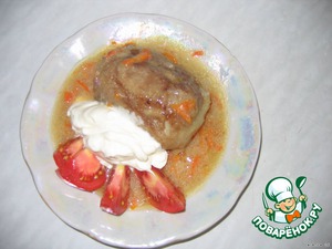 Сформировать из фарша котлетки и, положив на лепешечку из теста, равномерно распределить это тесто по поверхности котлетки толщиной примерно 1-1,5 см. Обвалять в муке.