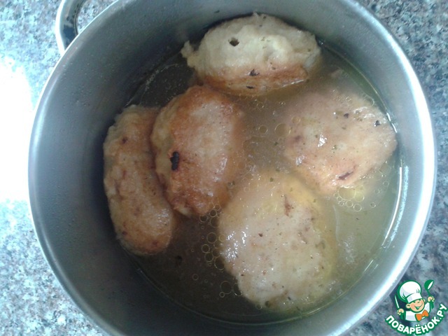 Обжаренные колдуны складываем в кастрюльку, заливаем бульоном что б бульон закрыл наши колдуны и если требуется досаливаем. ставим на огонь и после закипания тушим минут 30. Кто любит, можно запечь в духовке.
