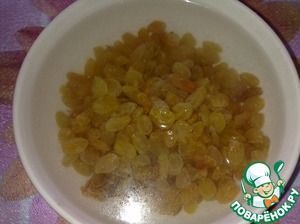 Изюм залейте кипятком, оставьте на 15 минут, откиньте на дуршлаг, обсушите.