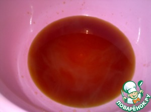 Добавьте в теплую карамельную воду растительное масло, ванилин, соевый соус ТМ "Kikkoman", смешайте.