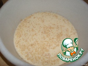 Дрожжи разводим в молоке с сахаром. Оставляем, чтобы растворились, и выросла шапочка.