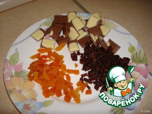 Для начинки курагу разрезаем на мелкие кусочки, изюм, если крупный, можно тоже нарезать.
