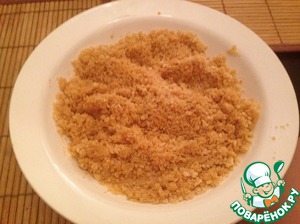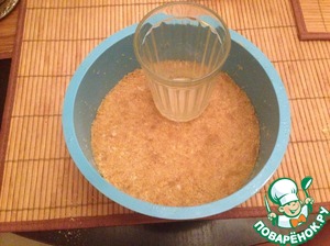 Выложить крошки в форму и довольно плотно утрамбовать дном стакана.