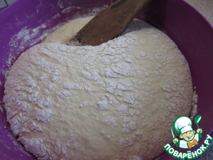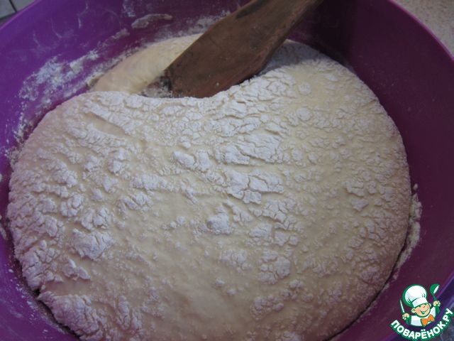 Ставим тесто в теплое место, прикрыв его полотенцем, чтоб подошло. Пока тесто поднимается - готовим противни (смазываем растительным маслом или кладем бумагу для выпечки.)