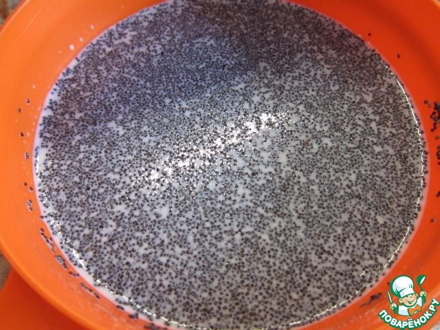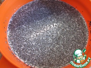 Заливаем мак теплым молоком и оставляем минимум на час, мак должен впитать молоко (набухнуть).