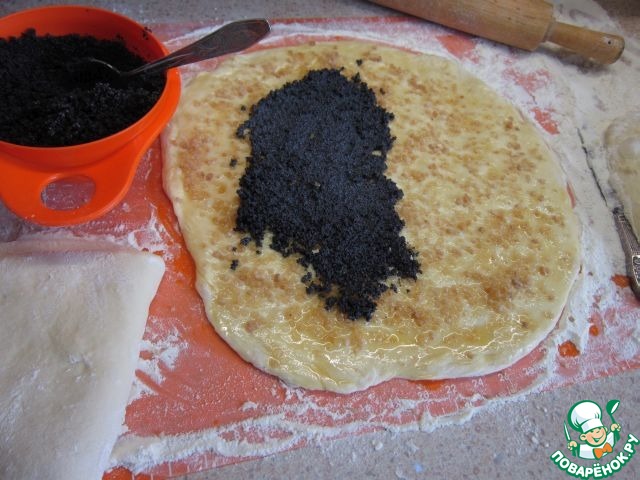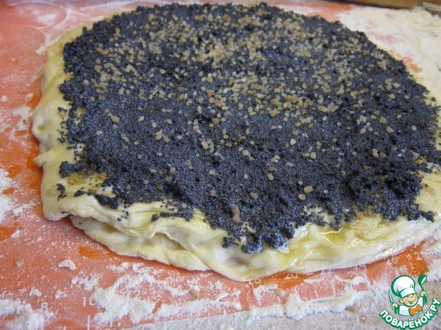 Сверху укладываем слой мака и опять присыпаем сахаром