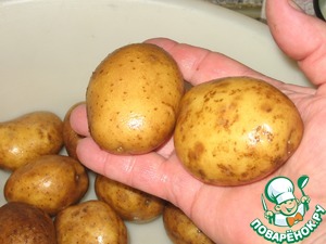 Средний, ближе-таки к малому картофель, тщательно моем.