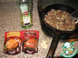 Вместо «Мартини» можно использовать любой вермут. Россо, Бьянко – без разницы! Всё одно – цвет даёт масса… Как дополнение в соус, ПО-ВКУСУ, добавлялись чеснок, краснодарский соус (хорошо разбавляет остроту, если переборщили –таки). Пару минут тушим до нужной консистенции, пробуя на вкус, чтоб ушёл запах алкоголя.