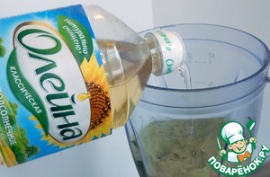 Добавляем подсолнечное масло, еще раз взбиваем блендером.