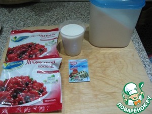 - Ягода (Замороженный ягодный коктейль, (смородина-красная и черная, клубника, клюква и т.д.), без слив.) — 600 г
