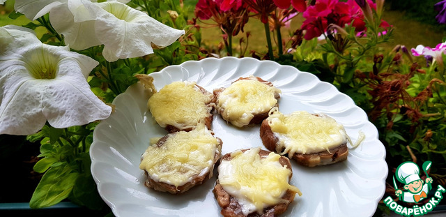 Уложили в смазанную форму, сверху мазнули майонезиком и присыпали натертым сыром