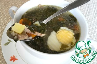 В кипящий бульон закладываем спассерованные лук с морковью, муку, свеклу протушенную, грибы, свекольный квас и добавляем ложечку сахара (По вкусу). Пробуем! В зависимости от вкусовых предпочтений добавляем либо сахар, либо квас. Варим еще 5 минут. Добавляем соль, перец, лавровый лист.