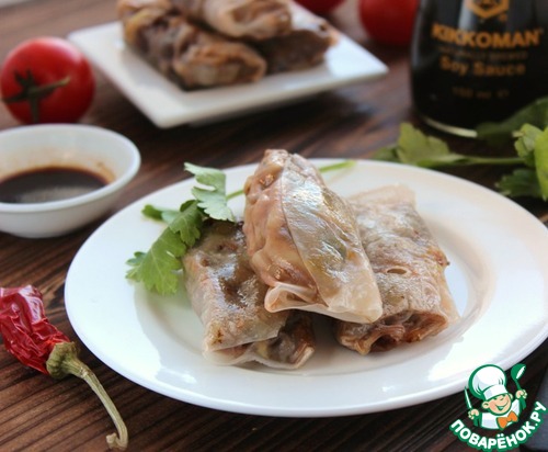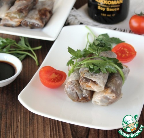 Если нет рисовой бумаги, можно подавать с любым гарниром, очень вкусно с рисом.