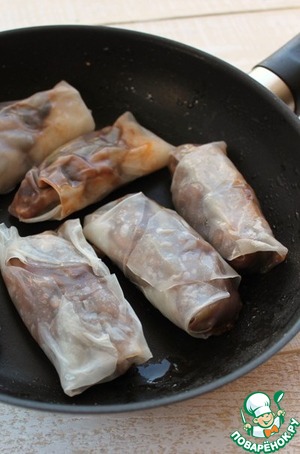 Фаршированную в рисовую бумагу начинку обжарить в разогретом масле.