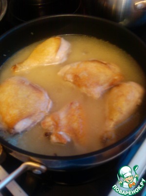 Но получилось идеальное блюдо. Очень вкусное и сильно насыщенное мясом, за счет собственного жира куриных бедрышек.